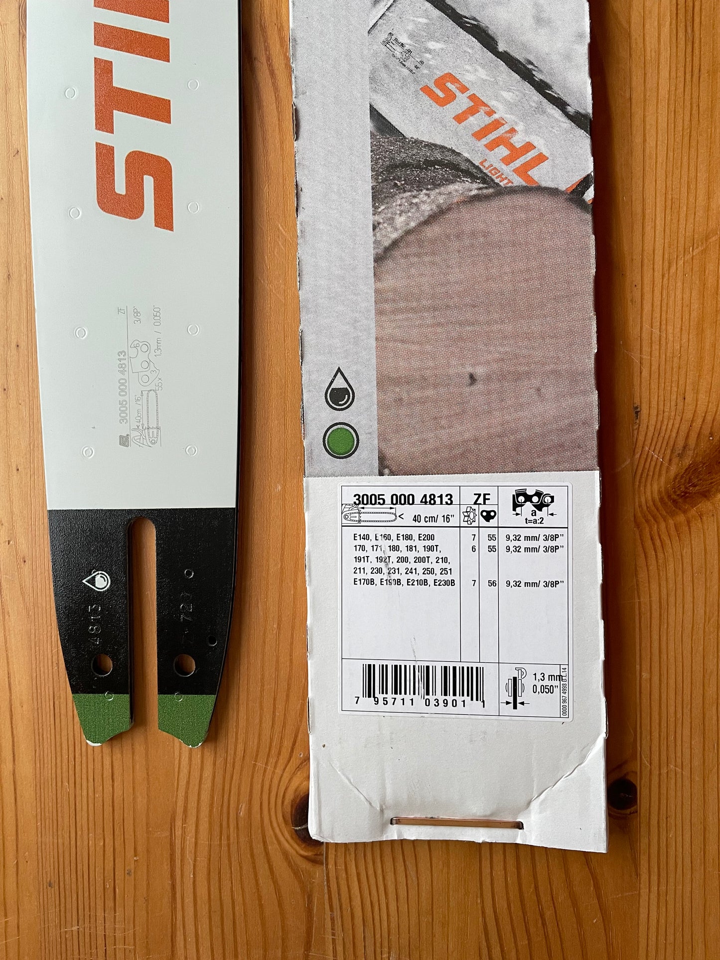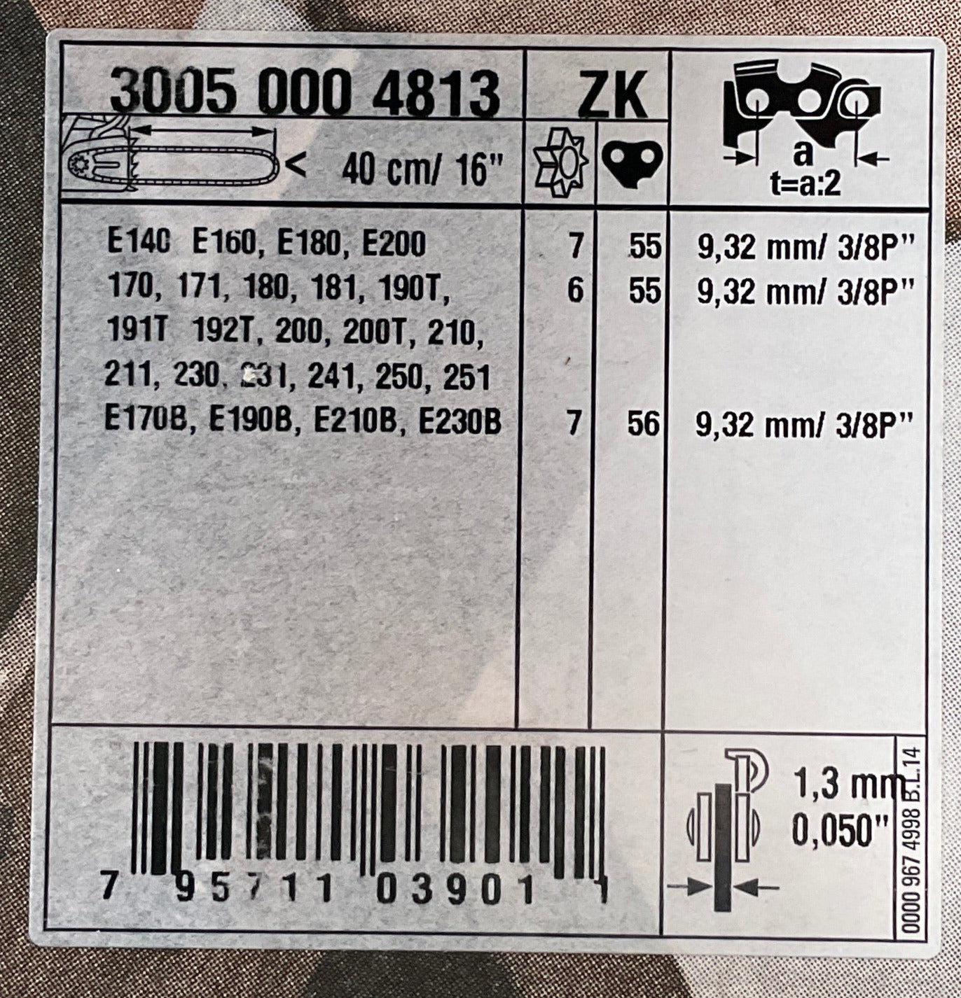 30050004813 uses a 3/8" pitch chain, 1.3mm (0.050") with 55 drive links.